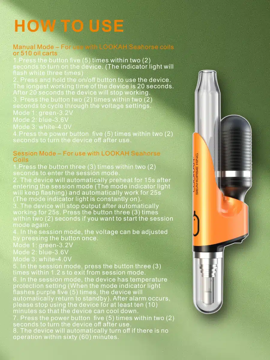 Just like other Lookah models, the Seahorse King features single-button control, making it beginner-friendly and hassle-free.