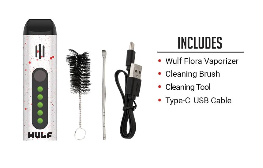The Flora incorporates an OLED display for the most up-to-date vaping data so users will know exactly what is going on with their device. Additionally, the device incorporates a magnetic mouthpiece, detachable ceramic filter, and haptic feedback. The Wulf Flora offers quick heating for faster sessions and a Type-C charging port for rapid power. Delivering a 1000mAh battery power, top performance, and great portability, the Wulf Mods Flora Portable Dry Herb Vaporizer is a must-have vaporizer device. The Flora comes in eleven different colors including Full Color, Silver, and more.